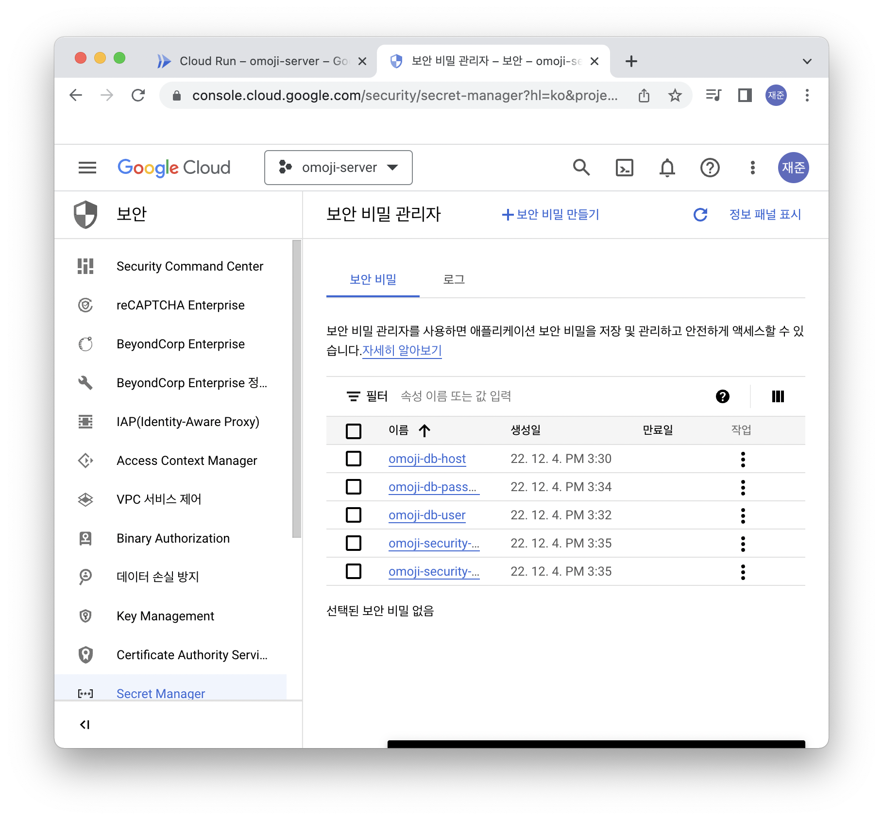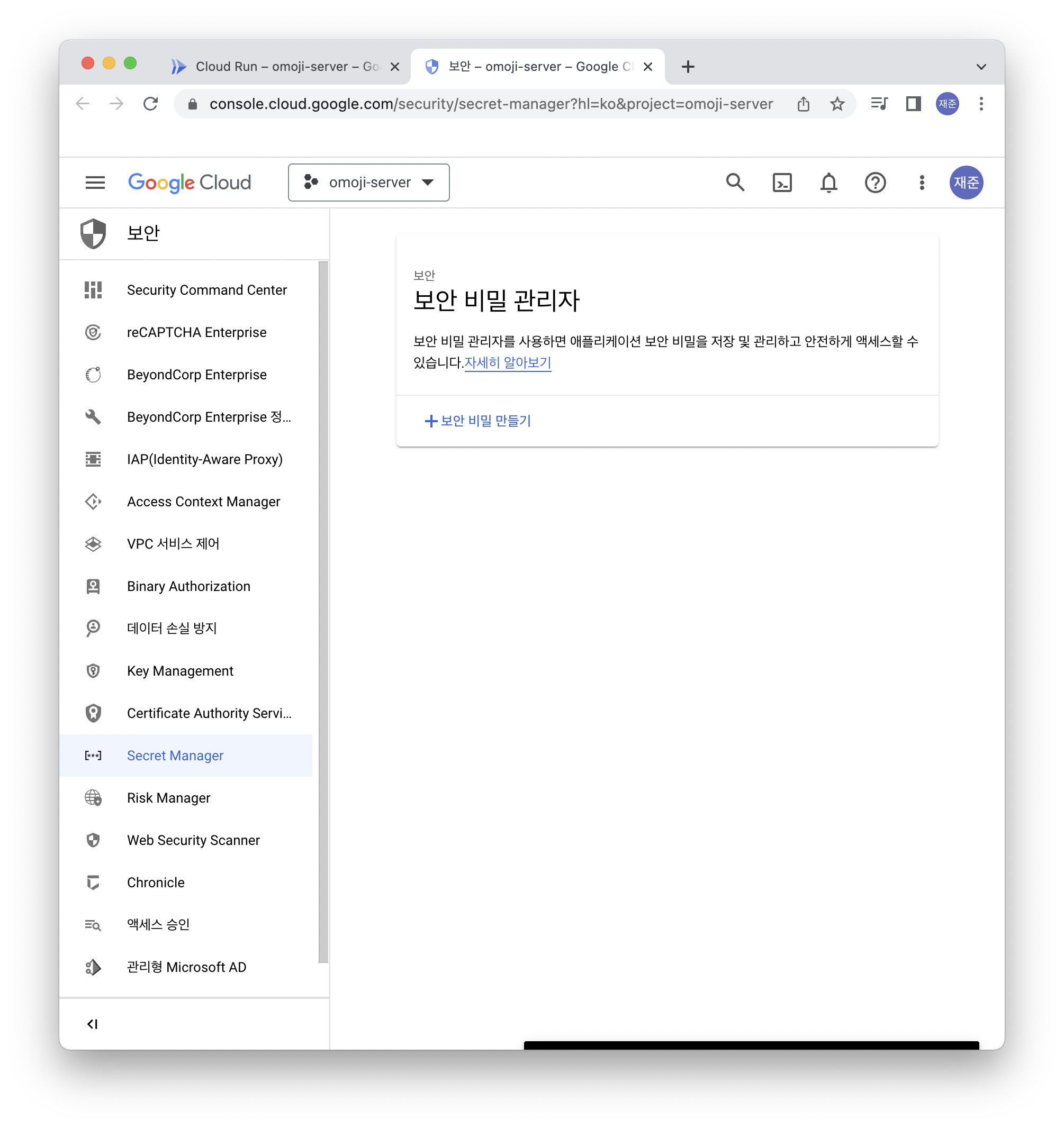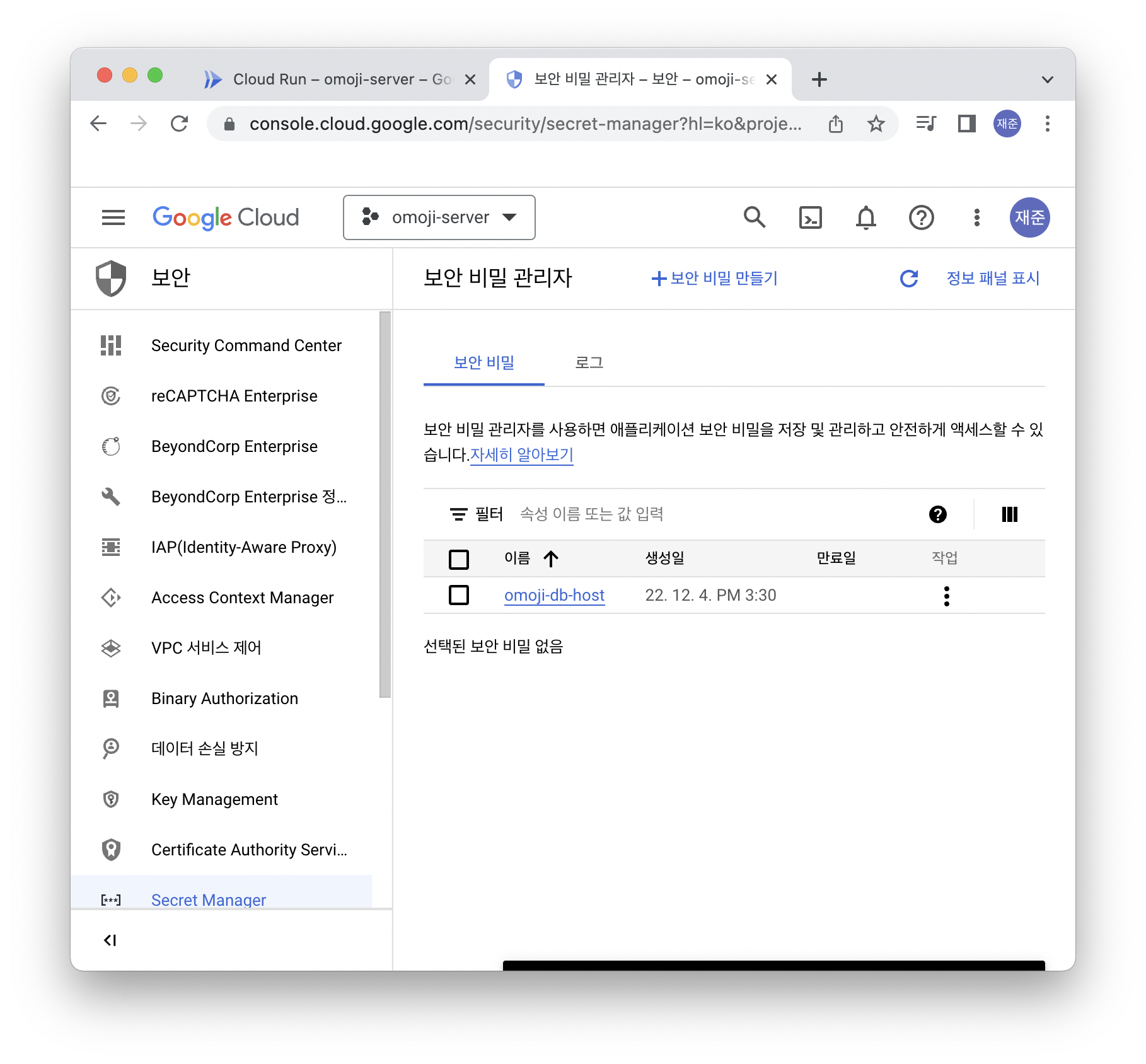 Cloud run으로 돌아오면 내가 생성한 보안 비밀키가 생성되어있을 것이다.