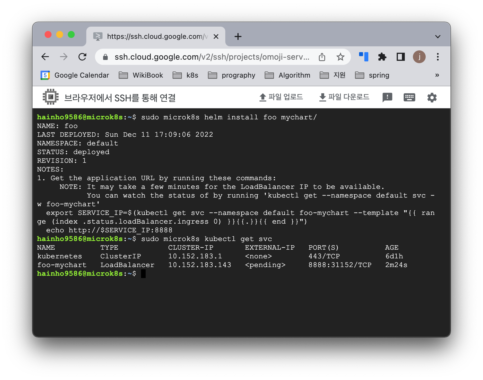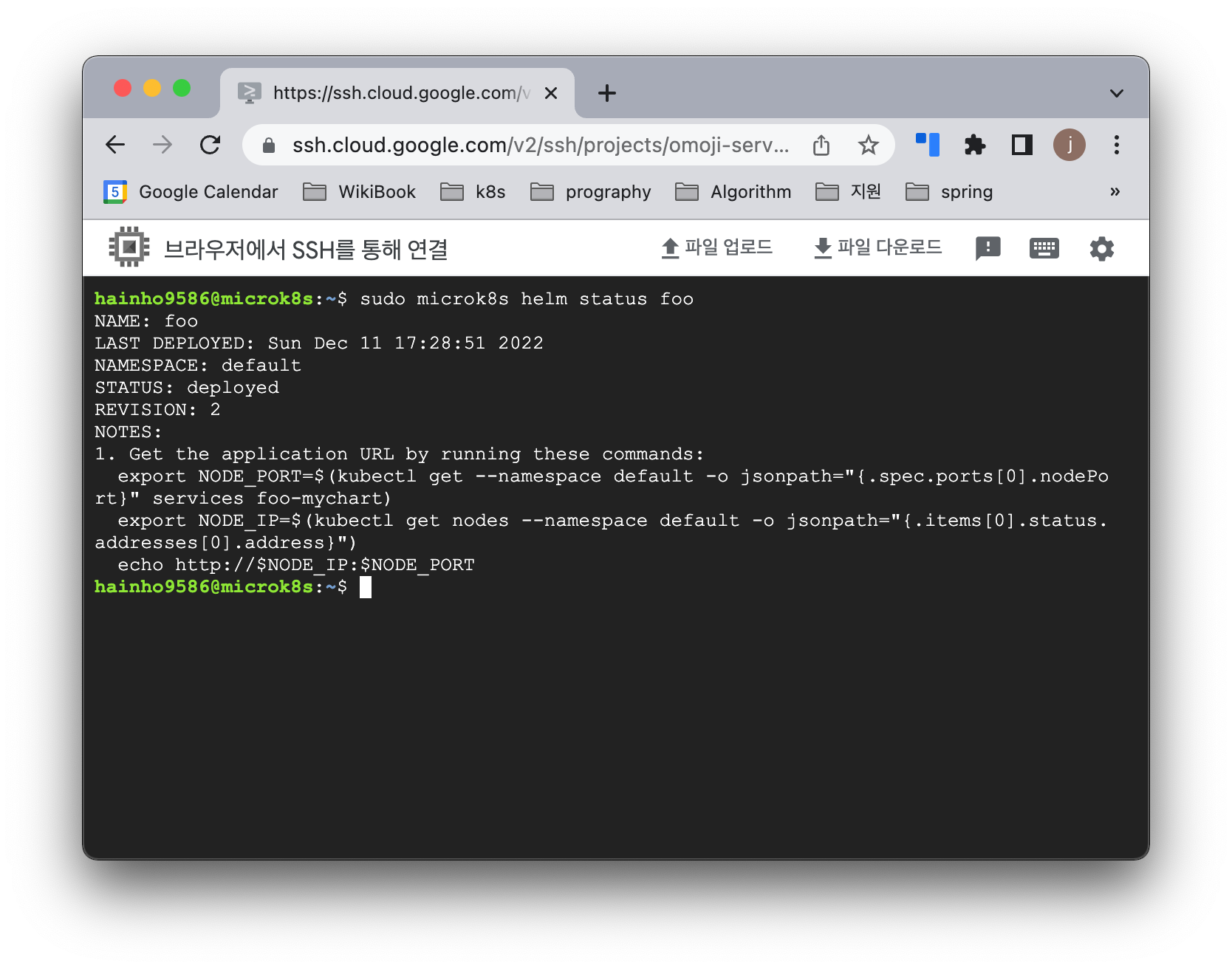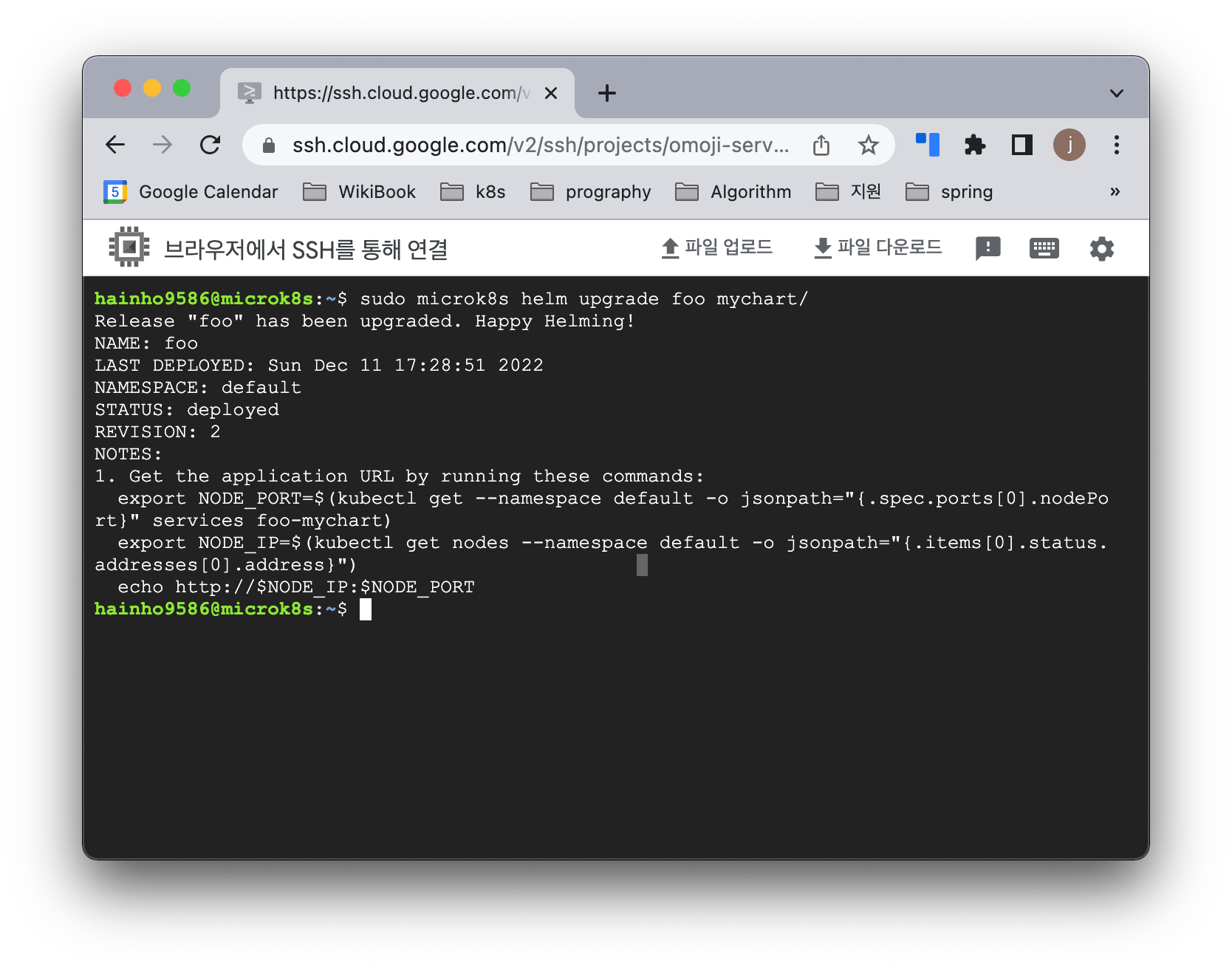 $ sudo microk8s helm upgrade 차트이름 차트경로