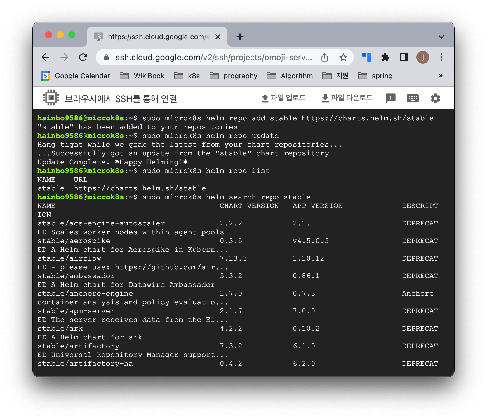 - stable 리파지토리에 저장된 chart 리스트를 불러온다.
