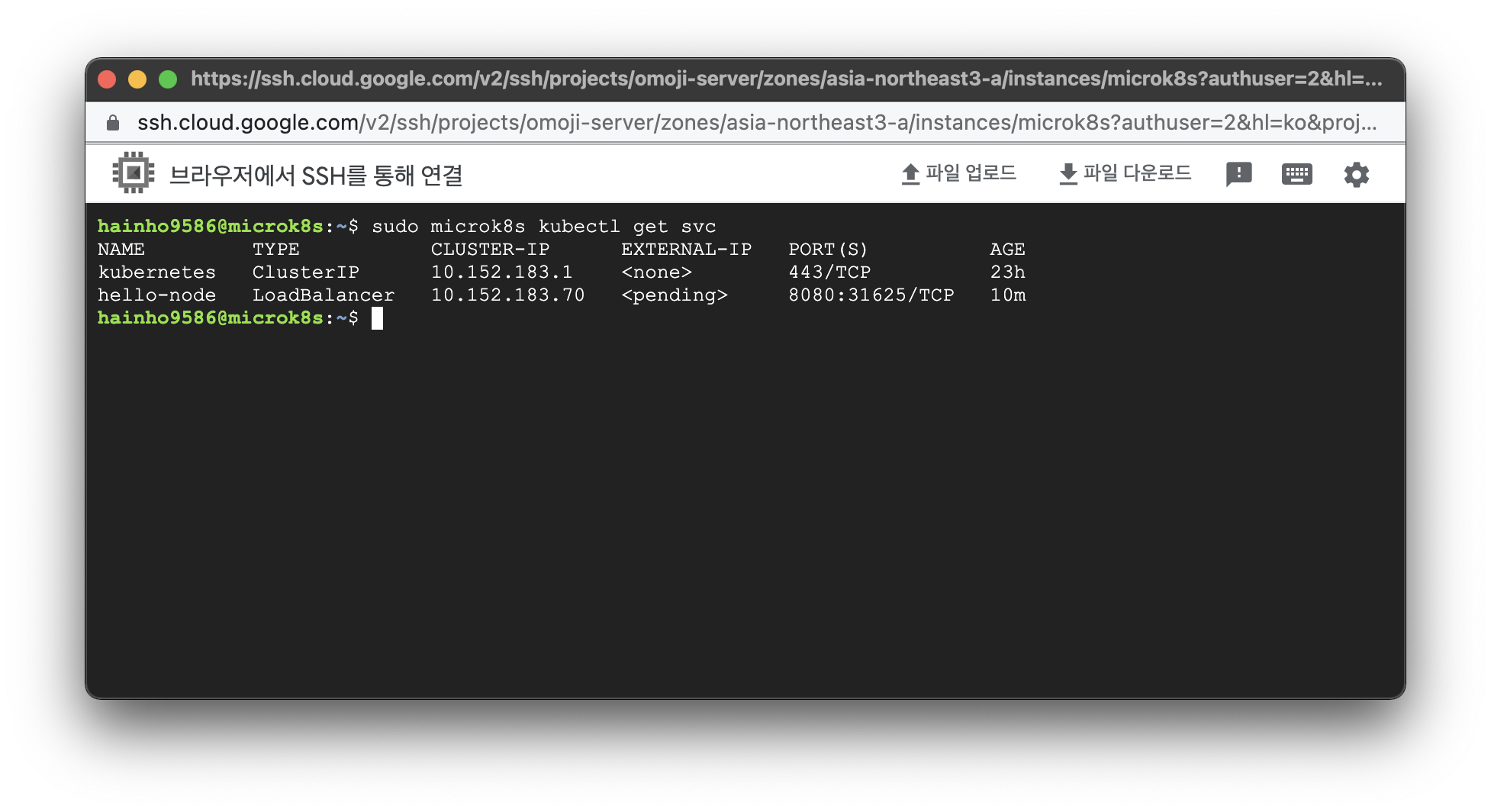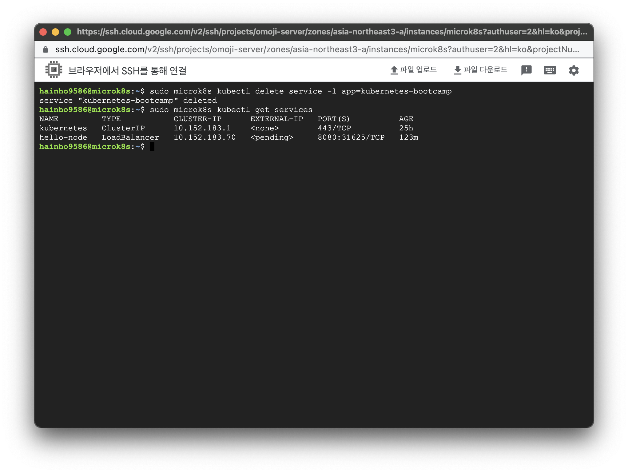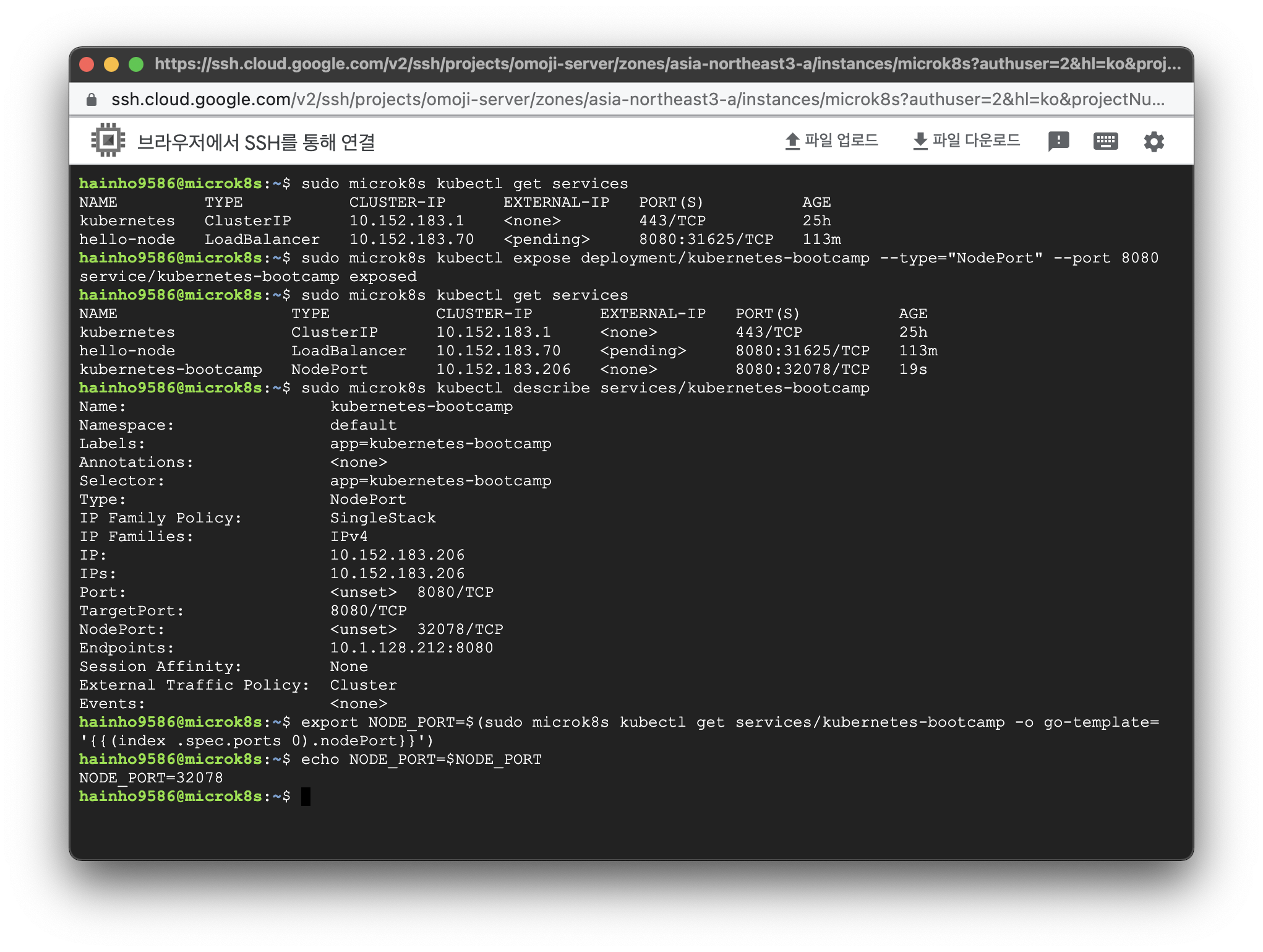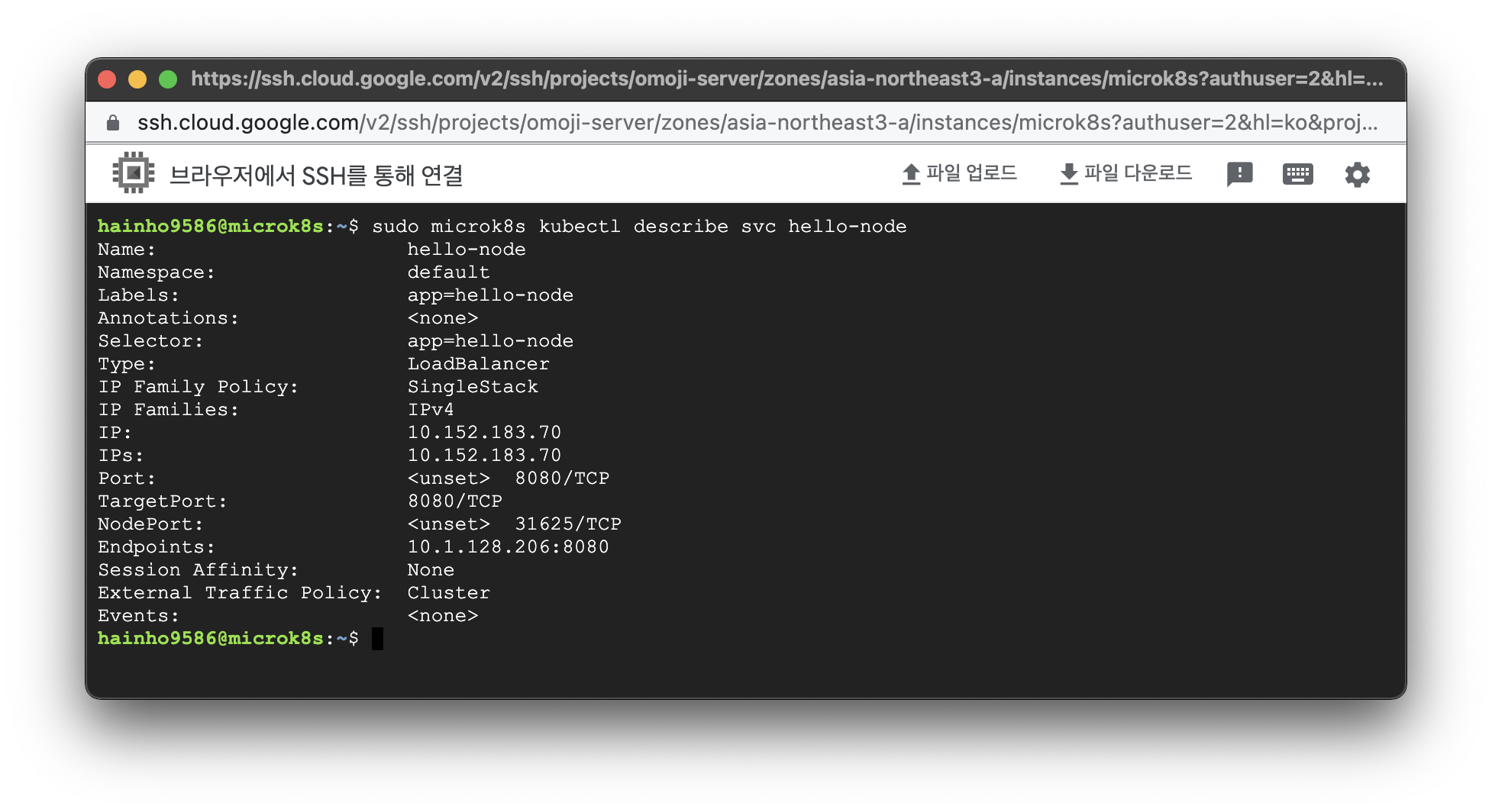 - 변경 확인을 위해서 사전에 values.yaml에 설정했던 server.type의 값을 Load Balancer에서 NodePort로 변경하였다.