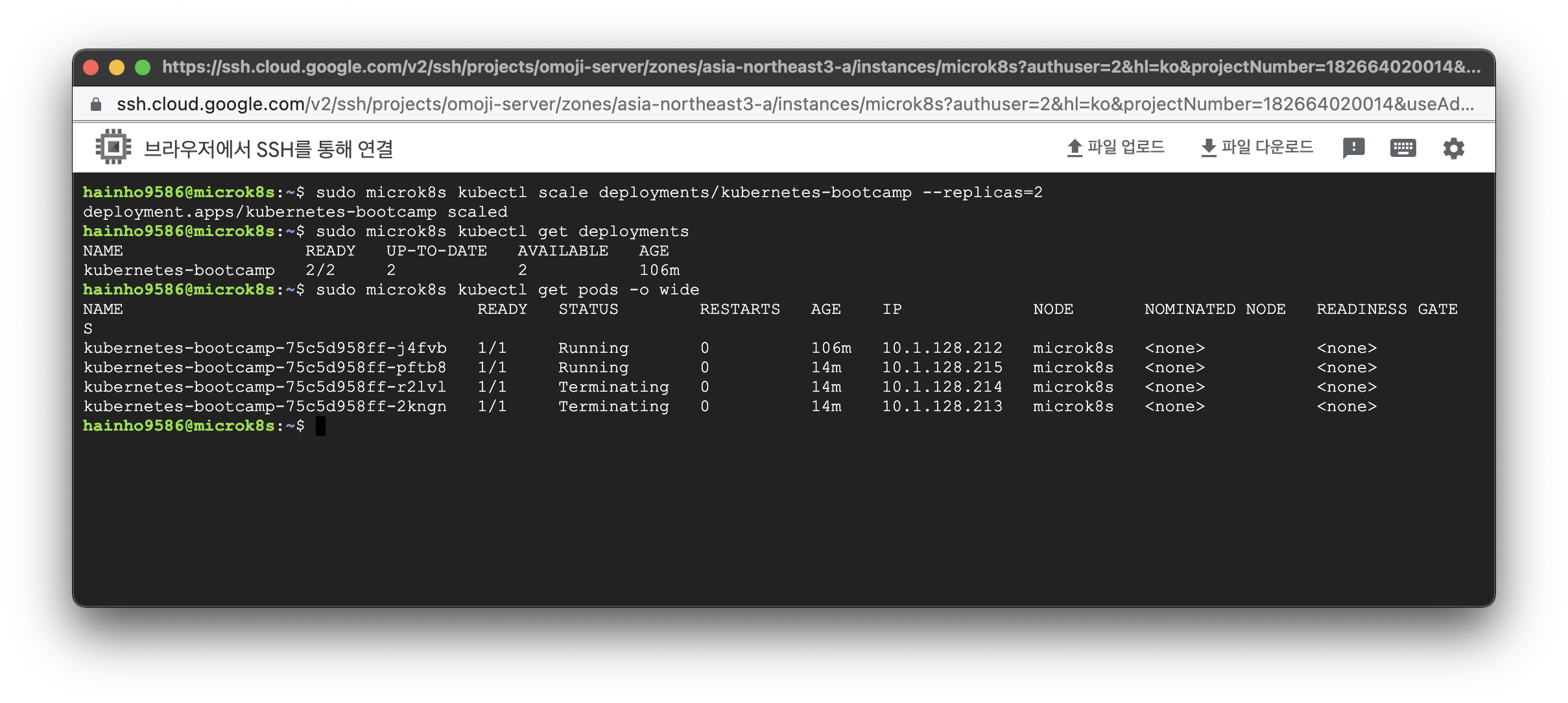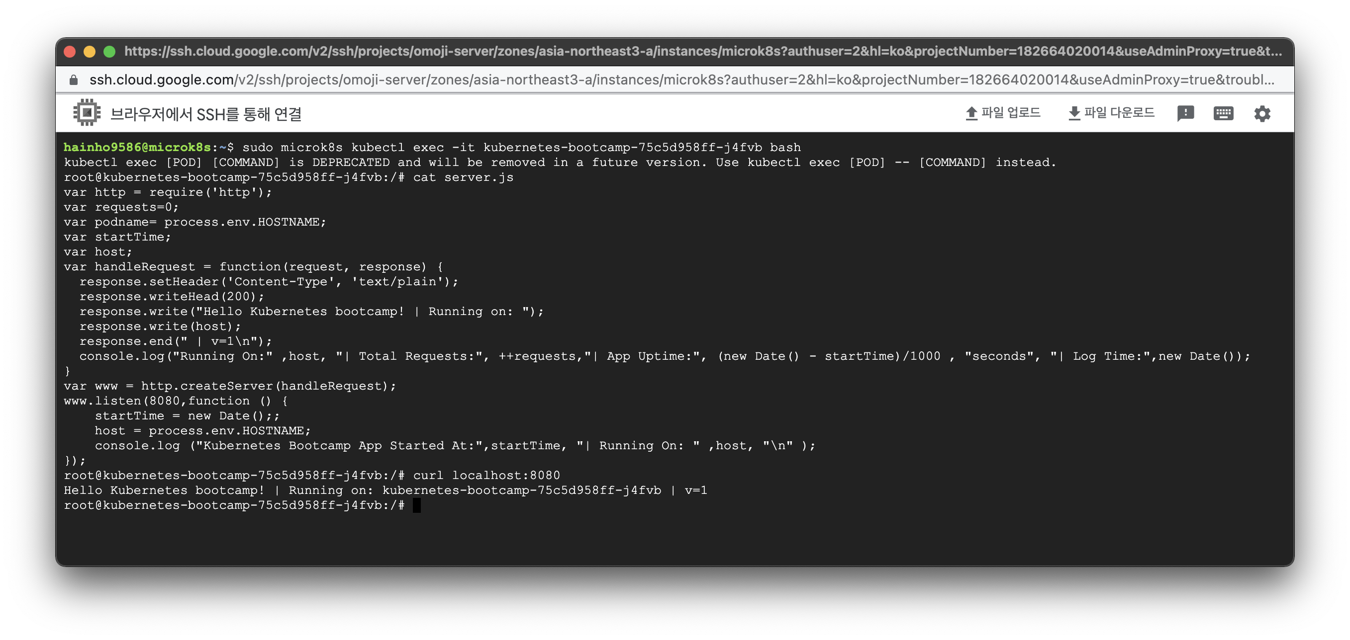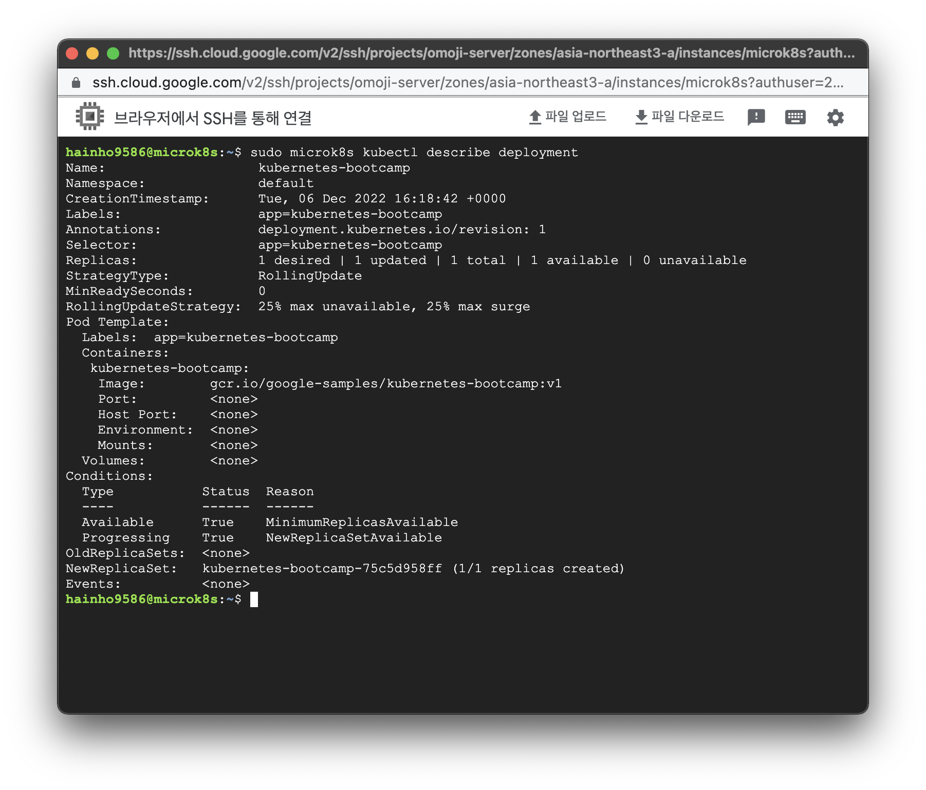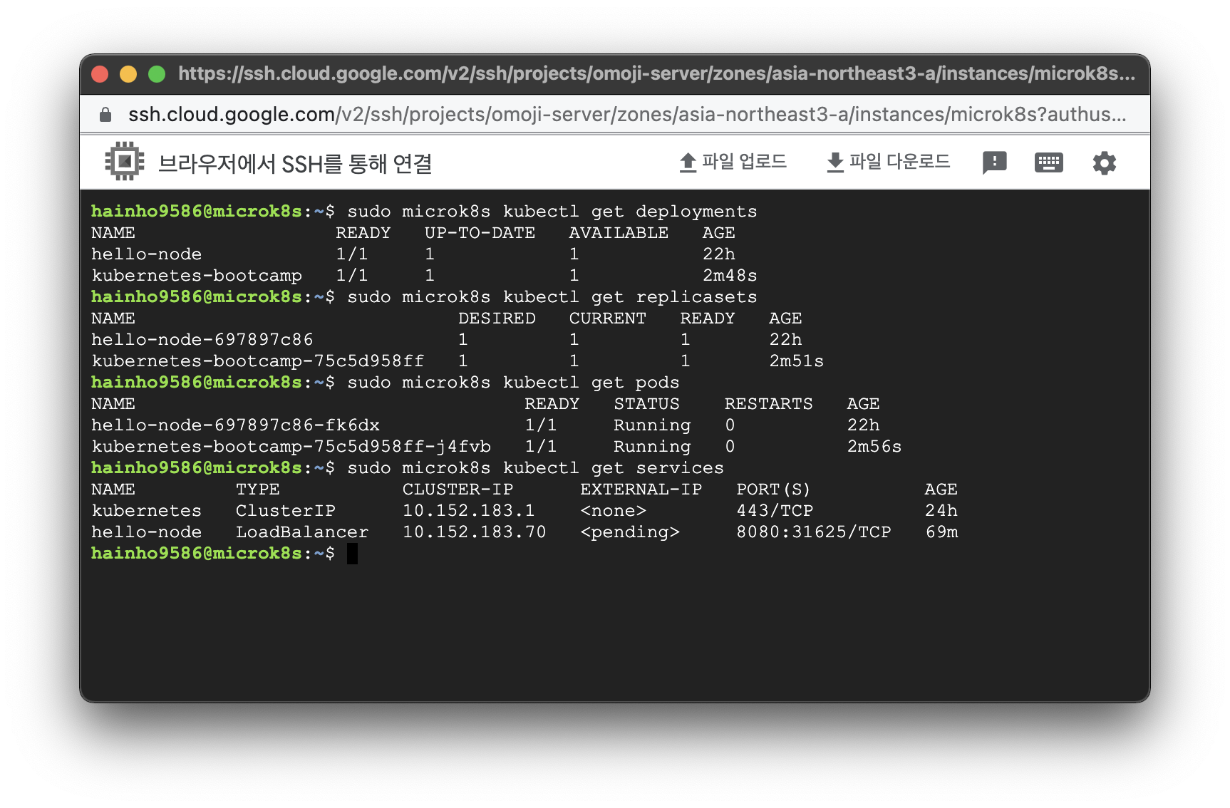 - 변경 확인을 위해서 사전에 values.yaml에 설정했던 server.type의 값을 Load Balancer에서 NodePort로 변경하였다.