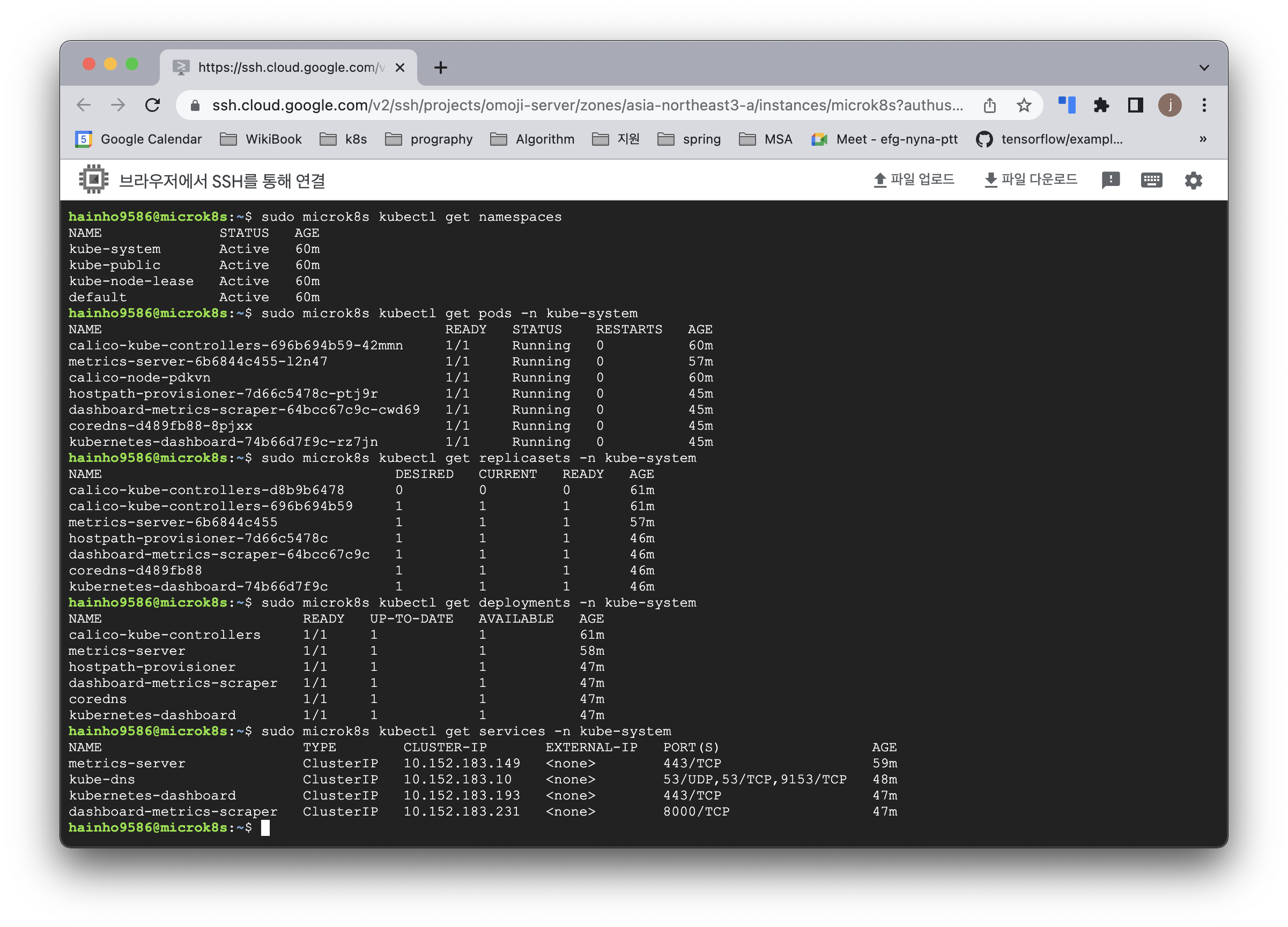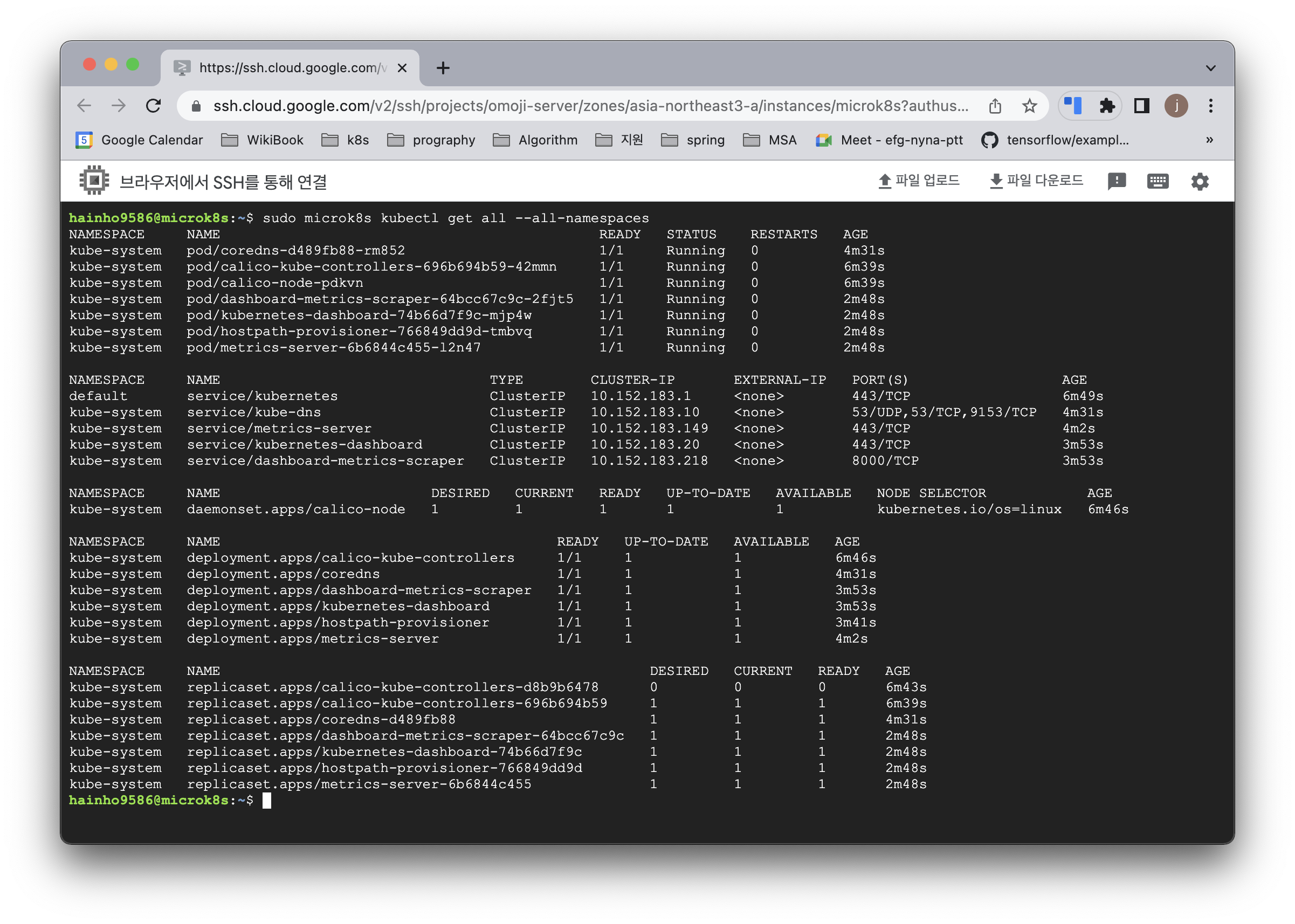 위 코드를 입력 하면 dns 및 대시보드 애드온을 활성화했으므로 해당 기능에 액세스할 수 있습니다.