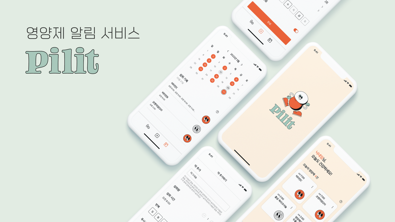 Pilit은 바쁜 현대 사회를 살고있는 사람들을 위해 영양제 조합을 추천하고, 영양제를 놓이지 않고 먹을 수 있도록 돕는 서비스 입니다.
