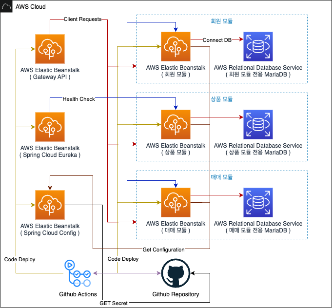 - 모듈 별로 각각의 인스턴스를 생성하여 MSA 아키텍처의 핵심 모듈을 구현