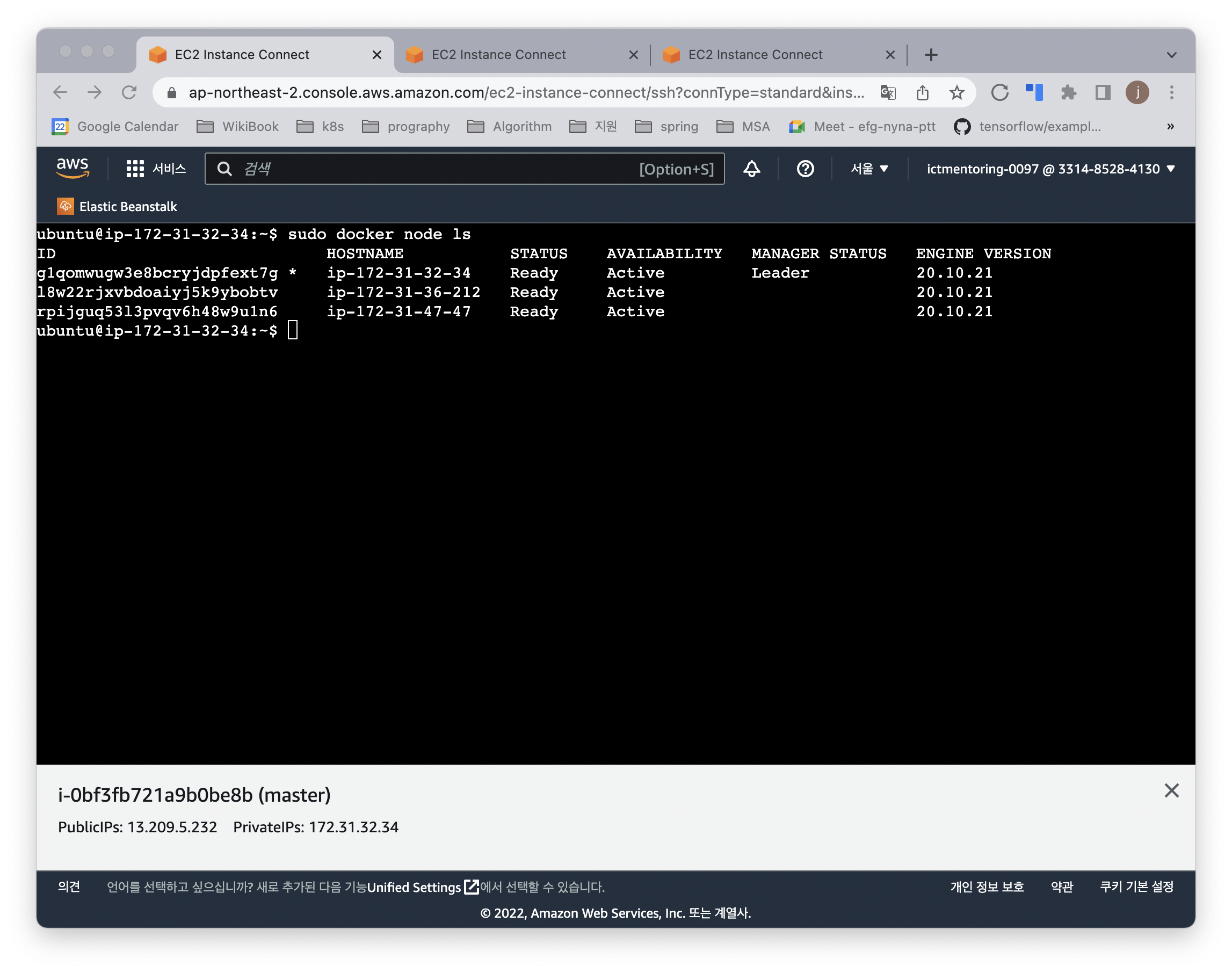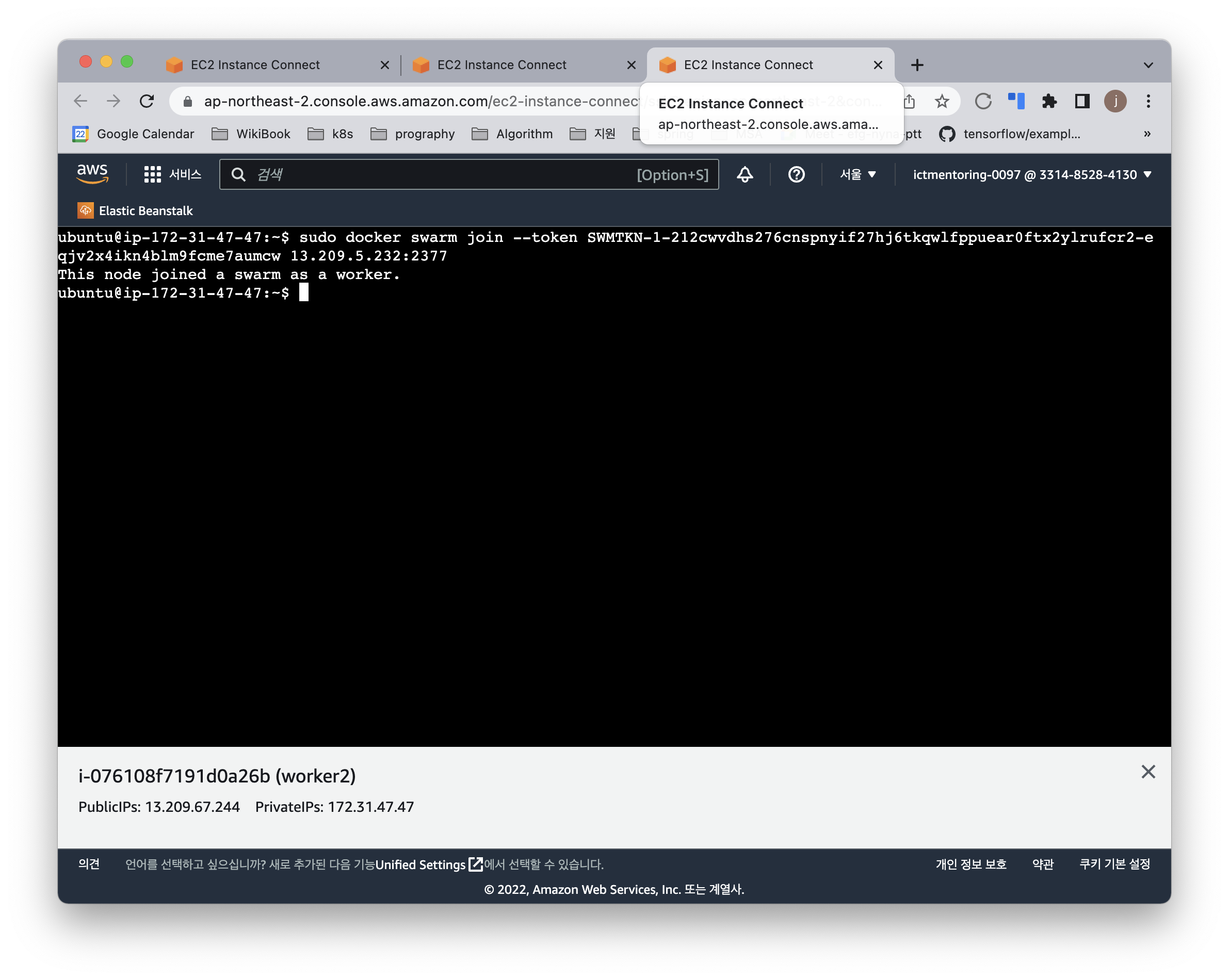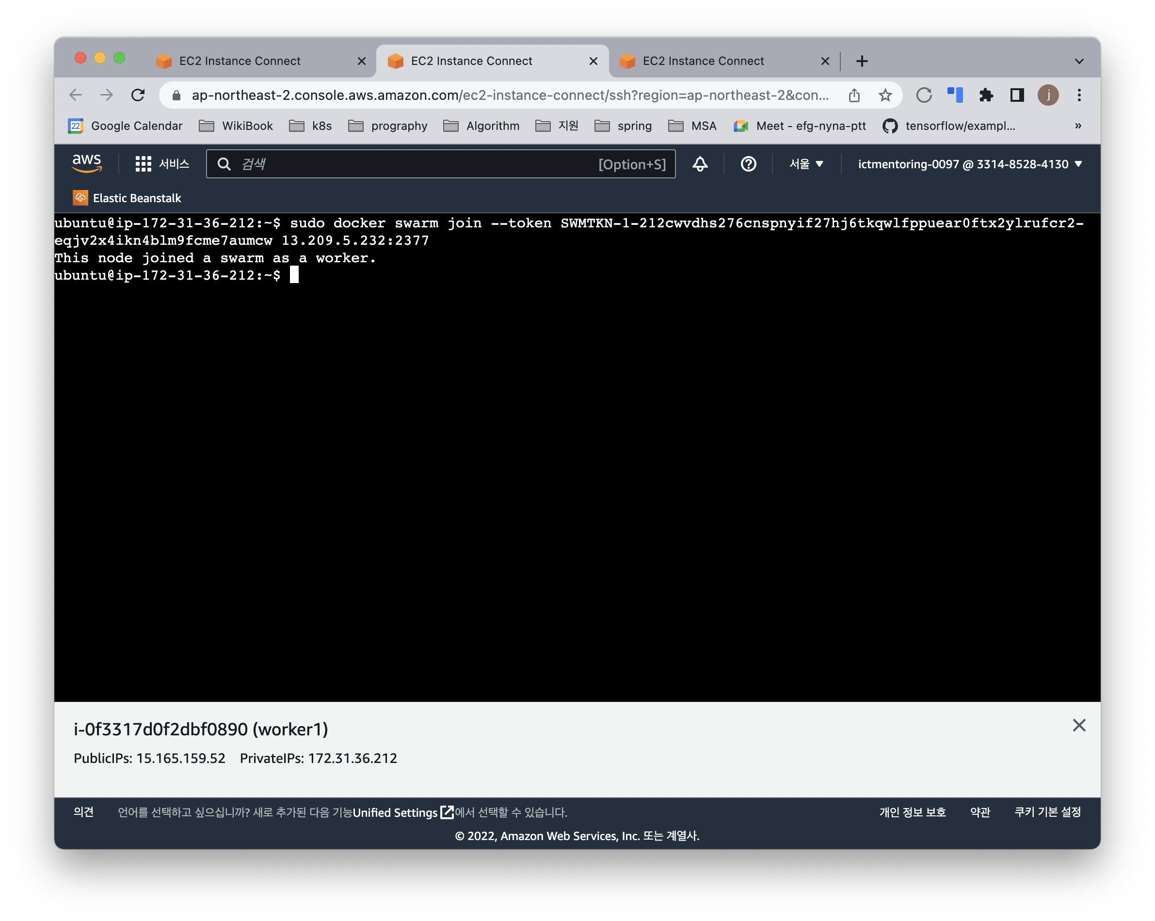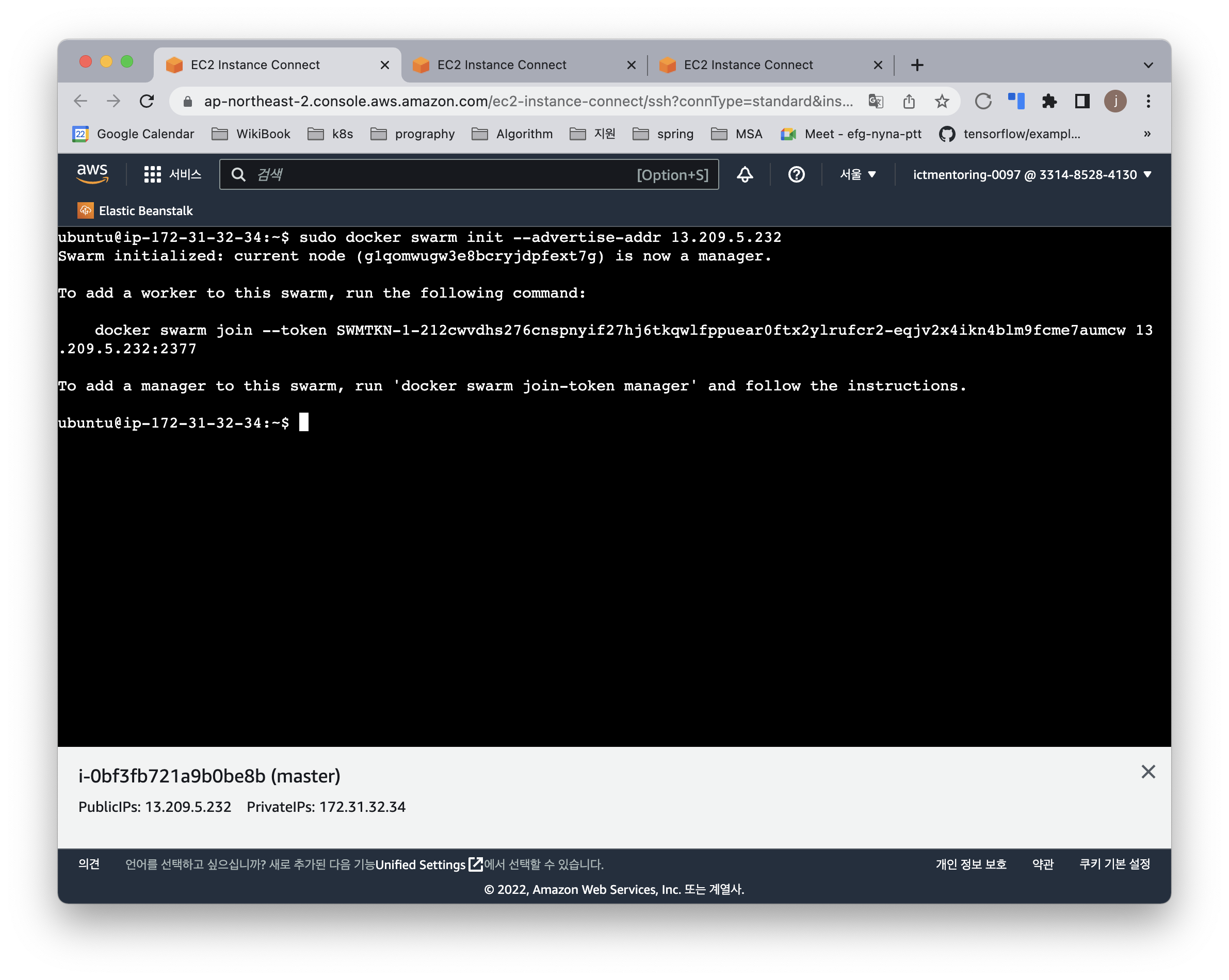 - 위 링크를 참고하여 3개 인스턴스(master, worker1, worker2)에 모두 도커를 설치