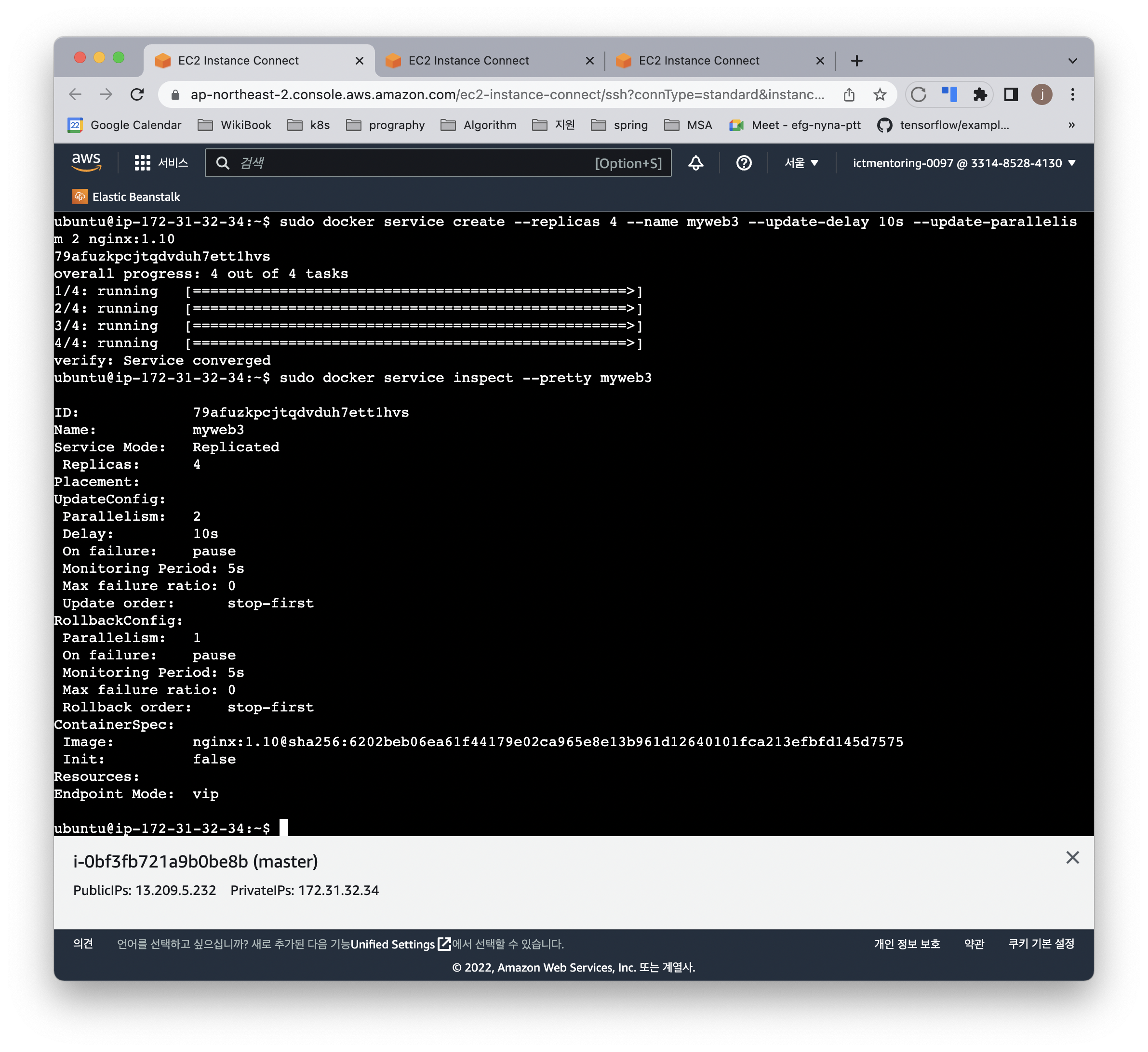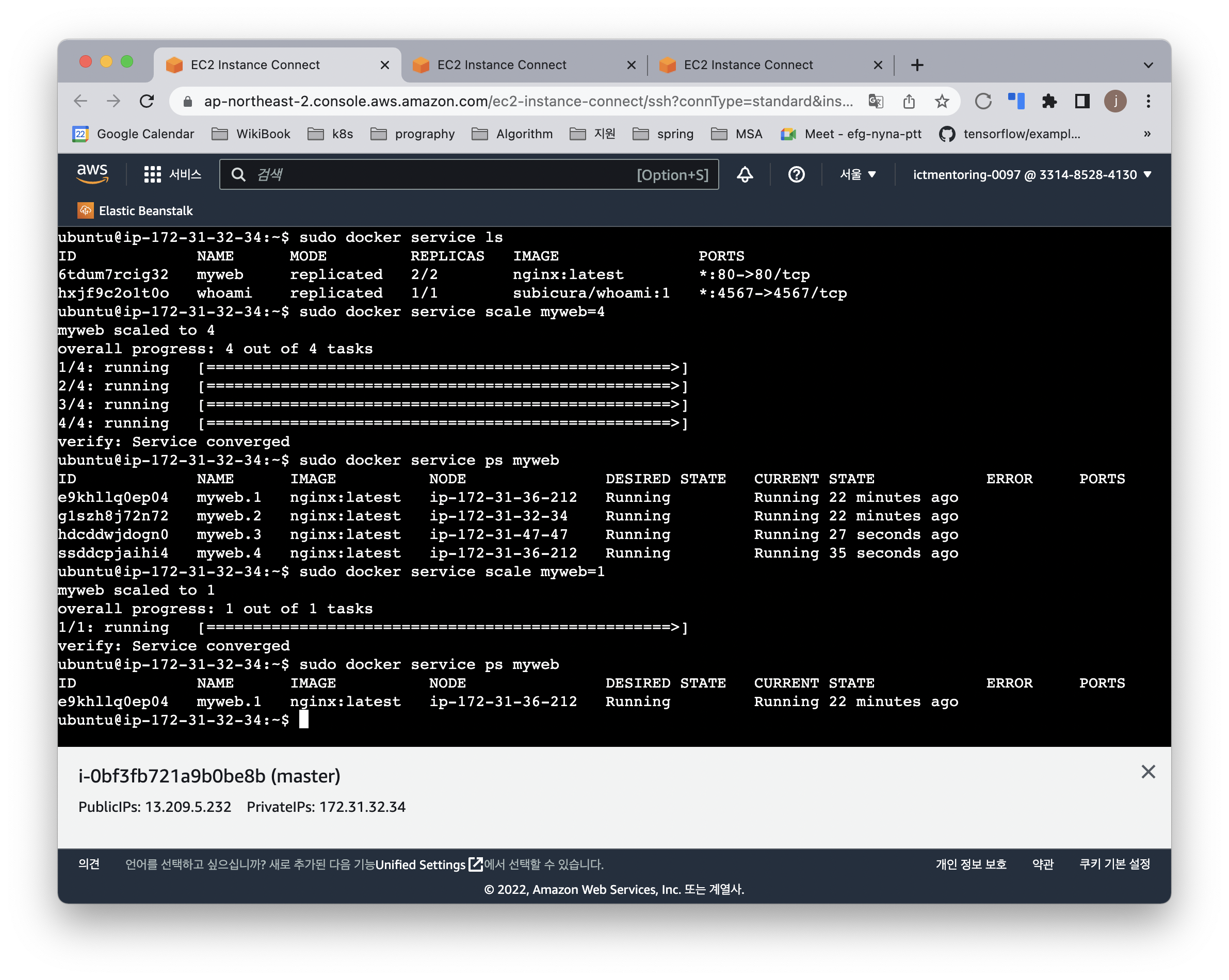 g1szh8j72n72 myweb.2 nginx:latest ip-172-31-32-34 Running Running 22 minutes ago