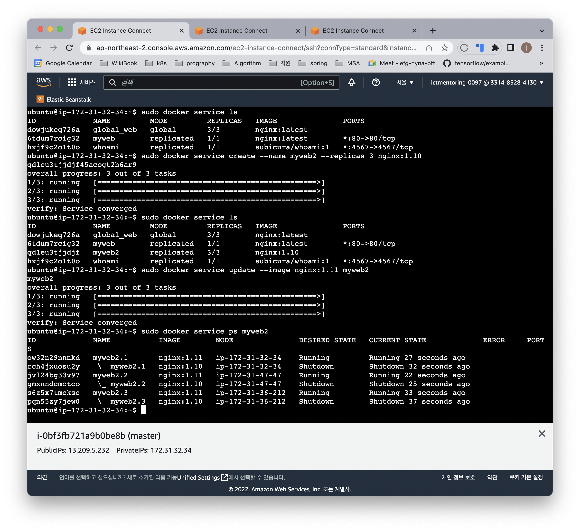 s6z5x7tmcksc myweb2.3 nginx:1.11 ip-172-31-36-212 Running Running 33 seconds ago